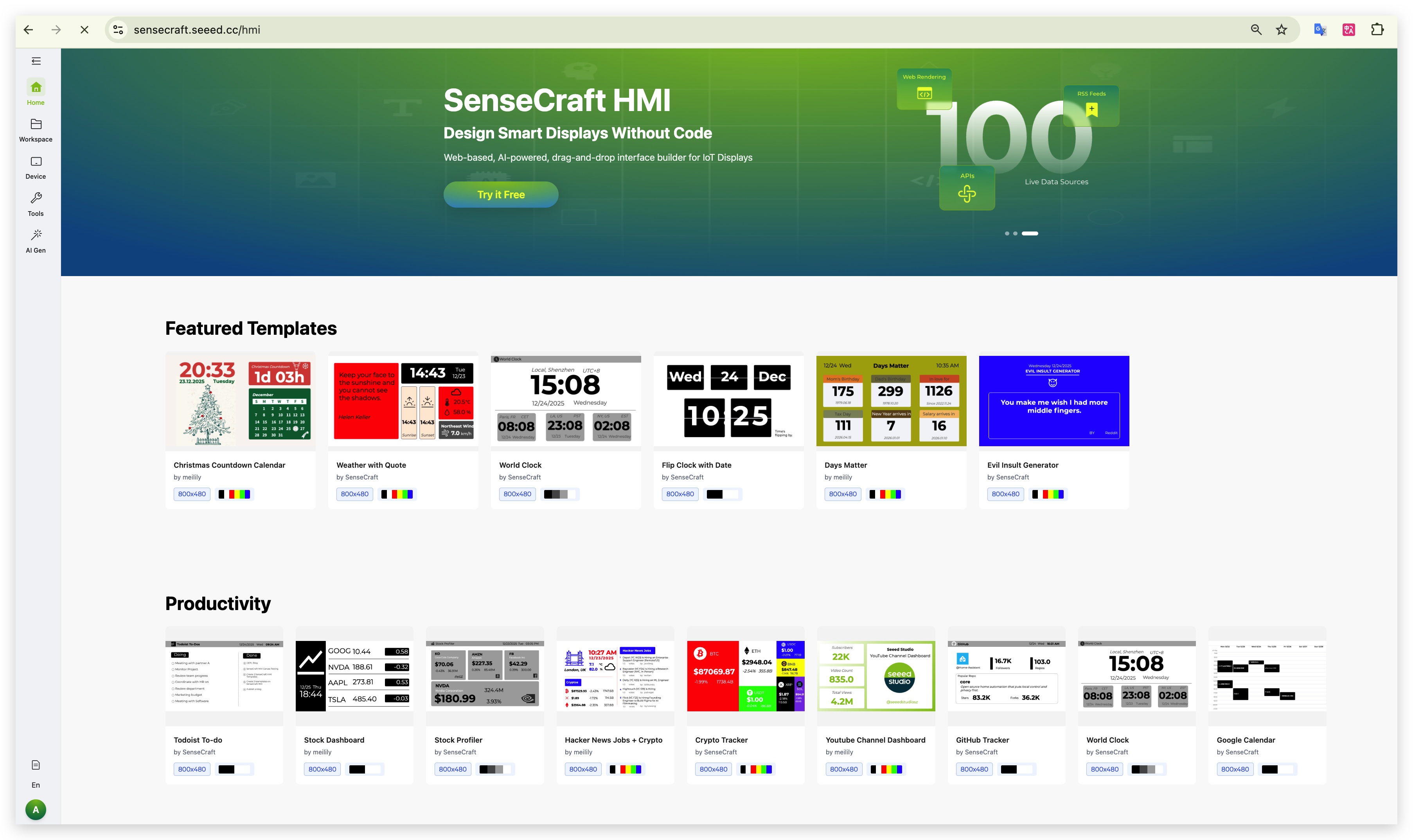 Section titled “Introduction”Welcome to the HMI Platform, a powerful and user-friendly interface designed to manage and customize your E-ink display devices. This platform serves as the central hub where you can explore creative templates, design your own dashboards, manage device settings, and optimize images for E-ink technology.