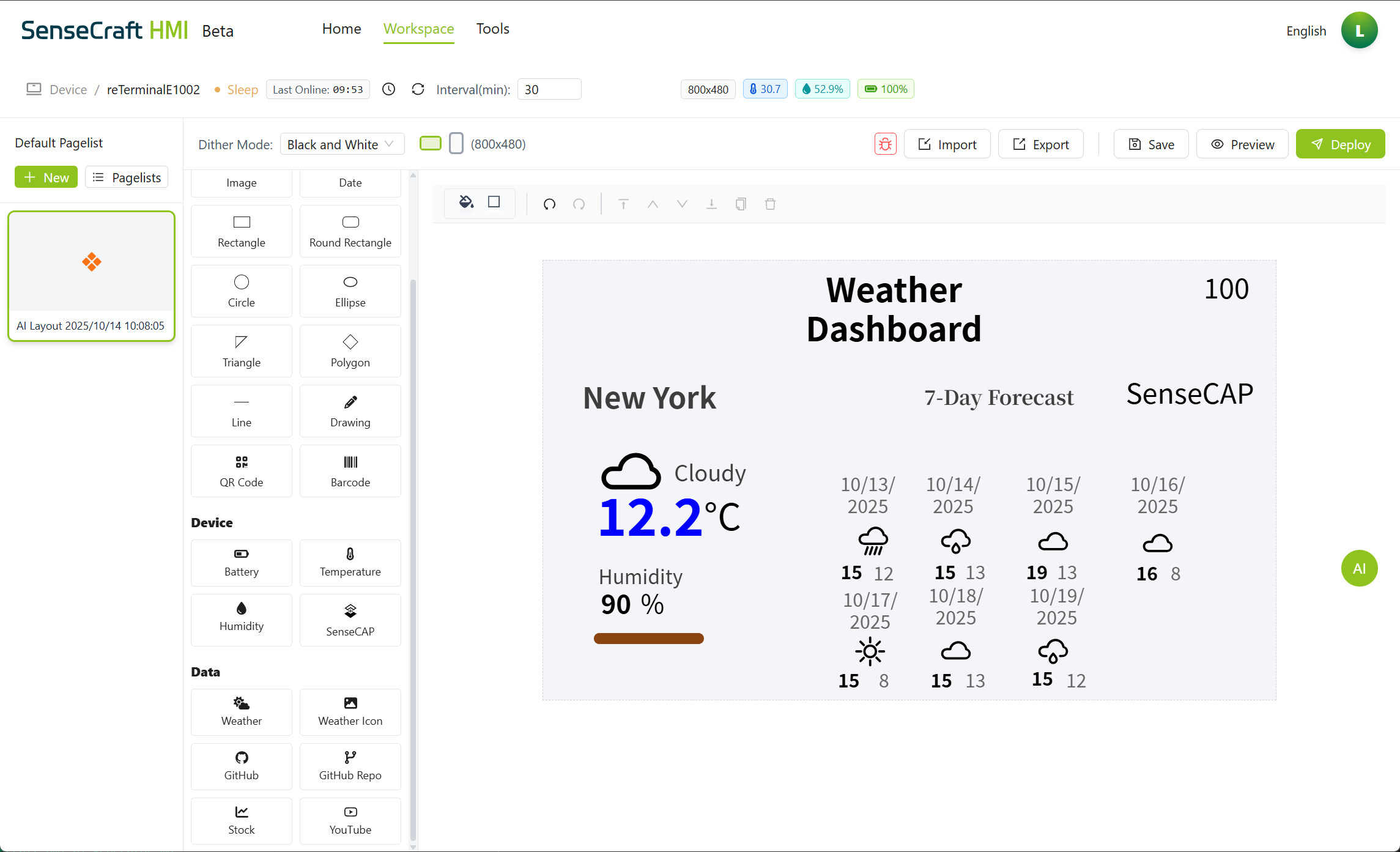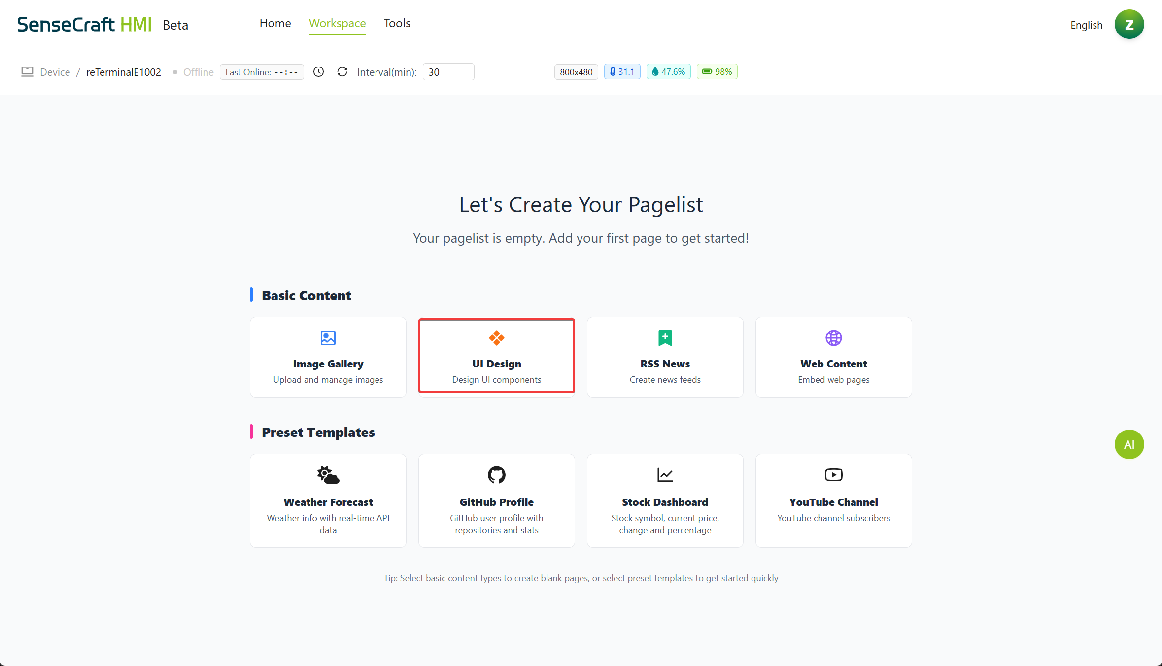 Section titled “Conclusion”Create stunning interfaces in minutes with SenseCraft HMI’s AI Generation. Powered by AI and seamless deployment, it helps you design professional, interactive screens—without design experience.