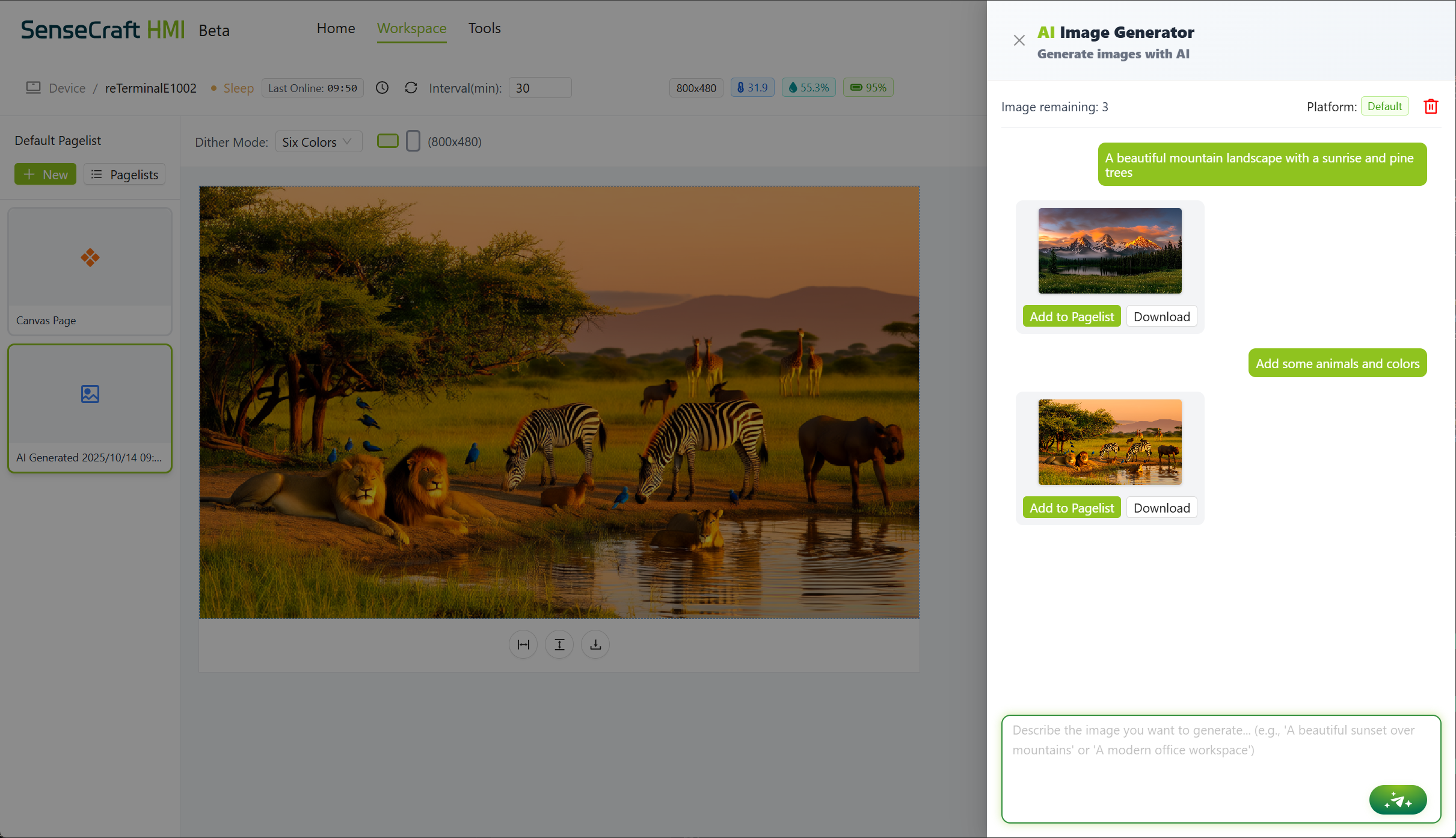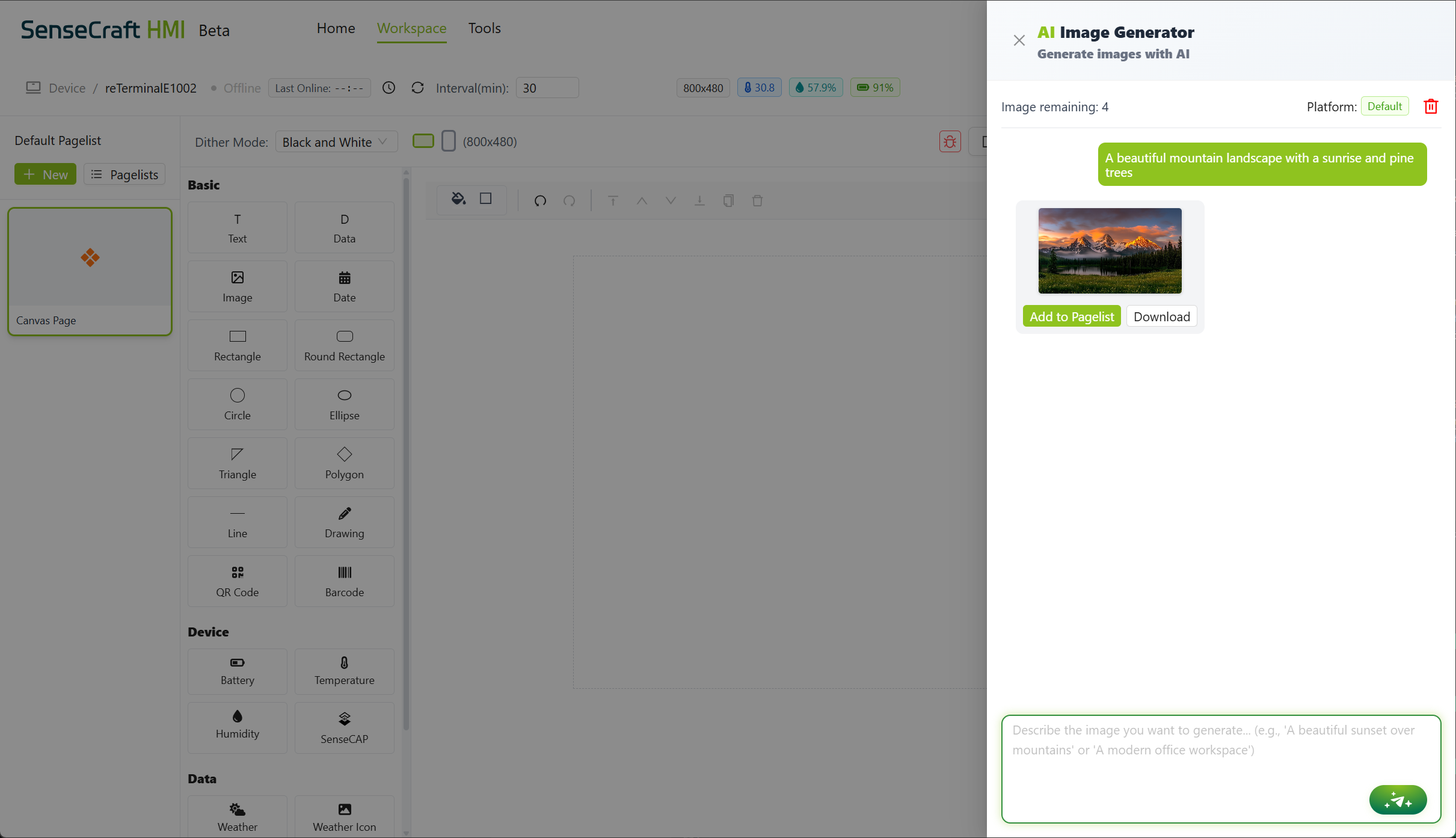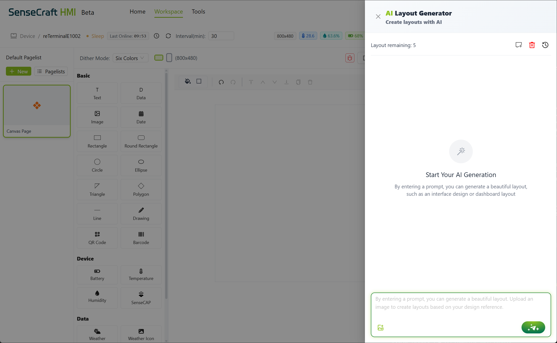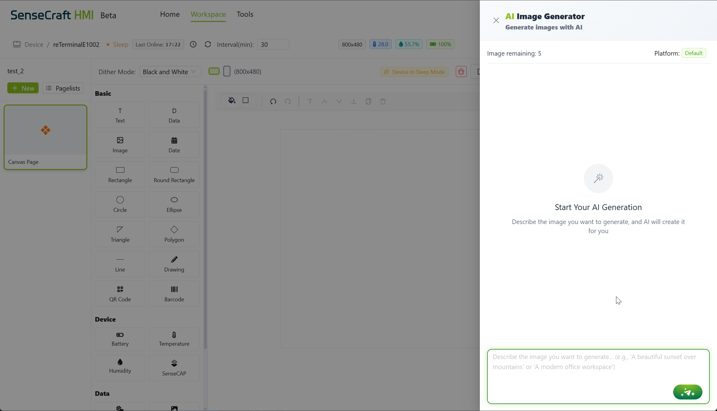 This tutorial will guide you through using the AI Generation capabilities in both the Gallery and Canvas sections of SenseCraft HMI, enabling you to: