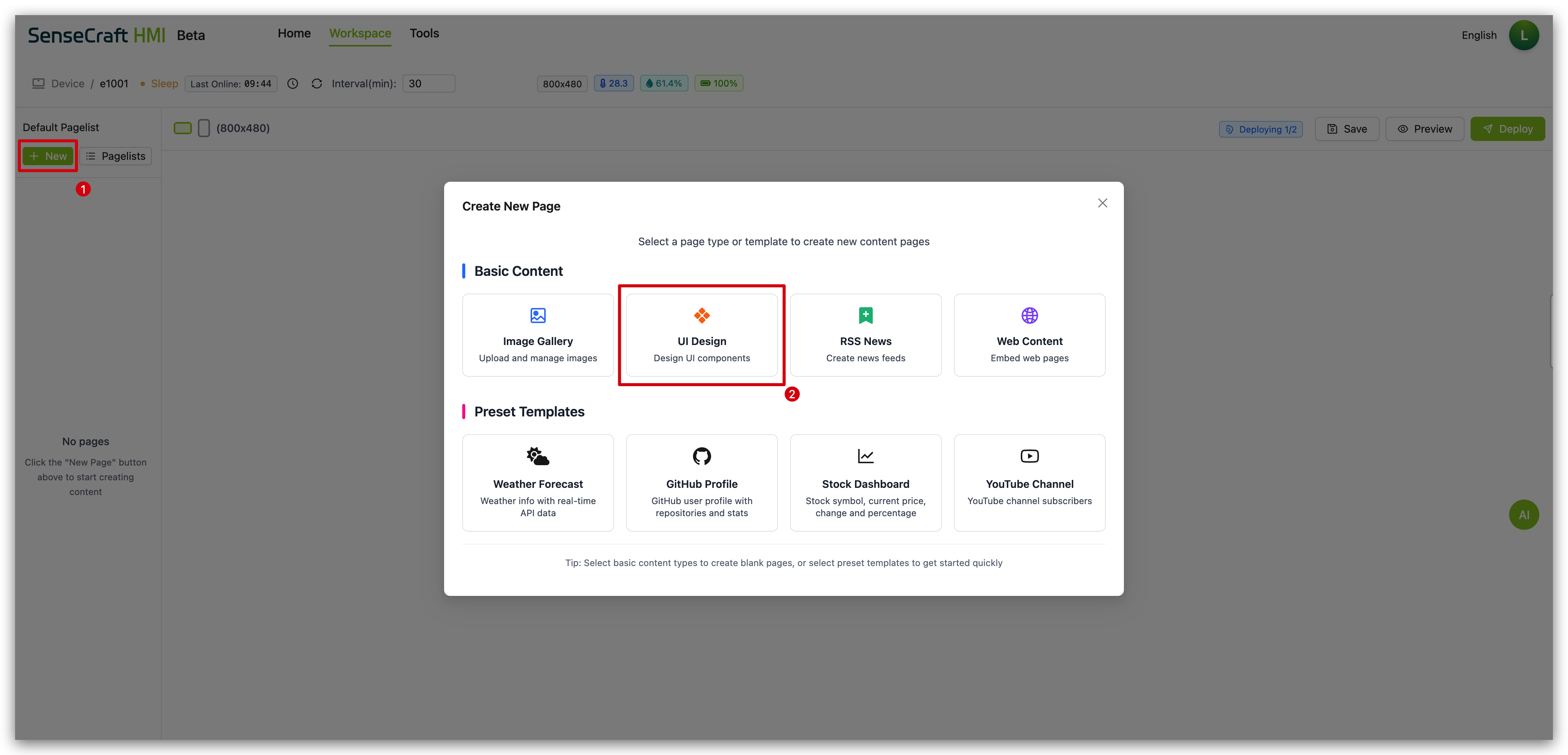 This comprehensive guide will walk you through using the UI Design function to create professional displays for your Seeed devices. From basic shapes and text to real-time data widgets and pre-made templates, you’ll learn everything you need to build customized interfaces that meet your specific needs.