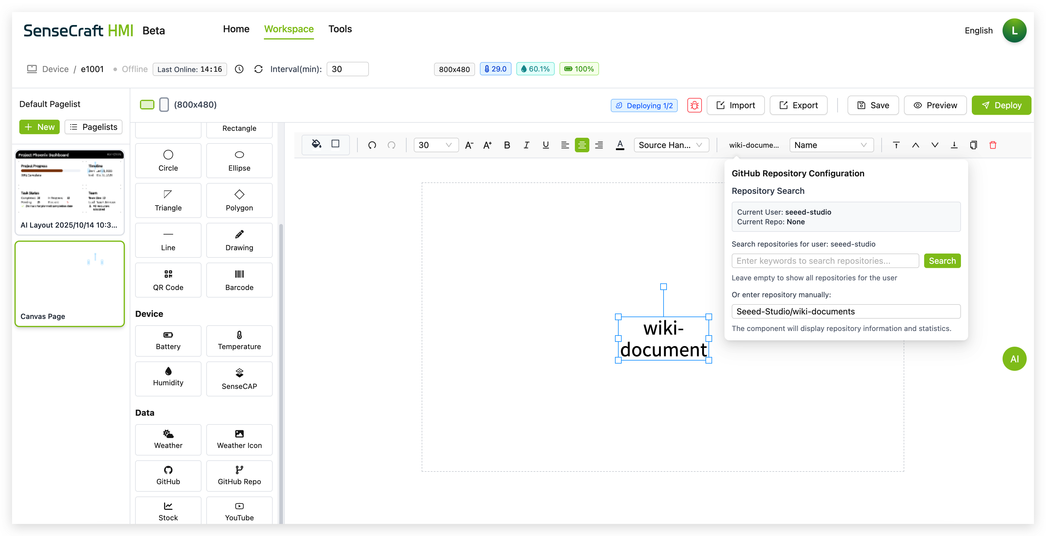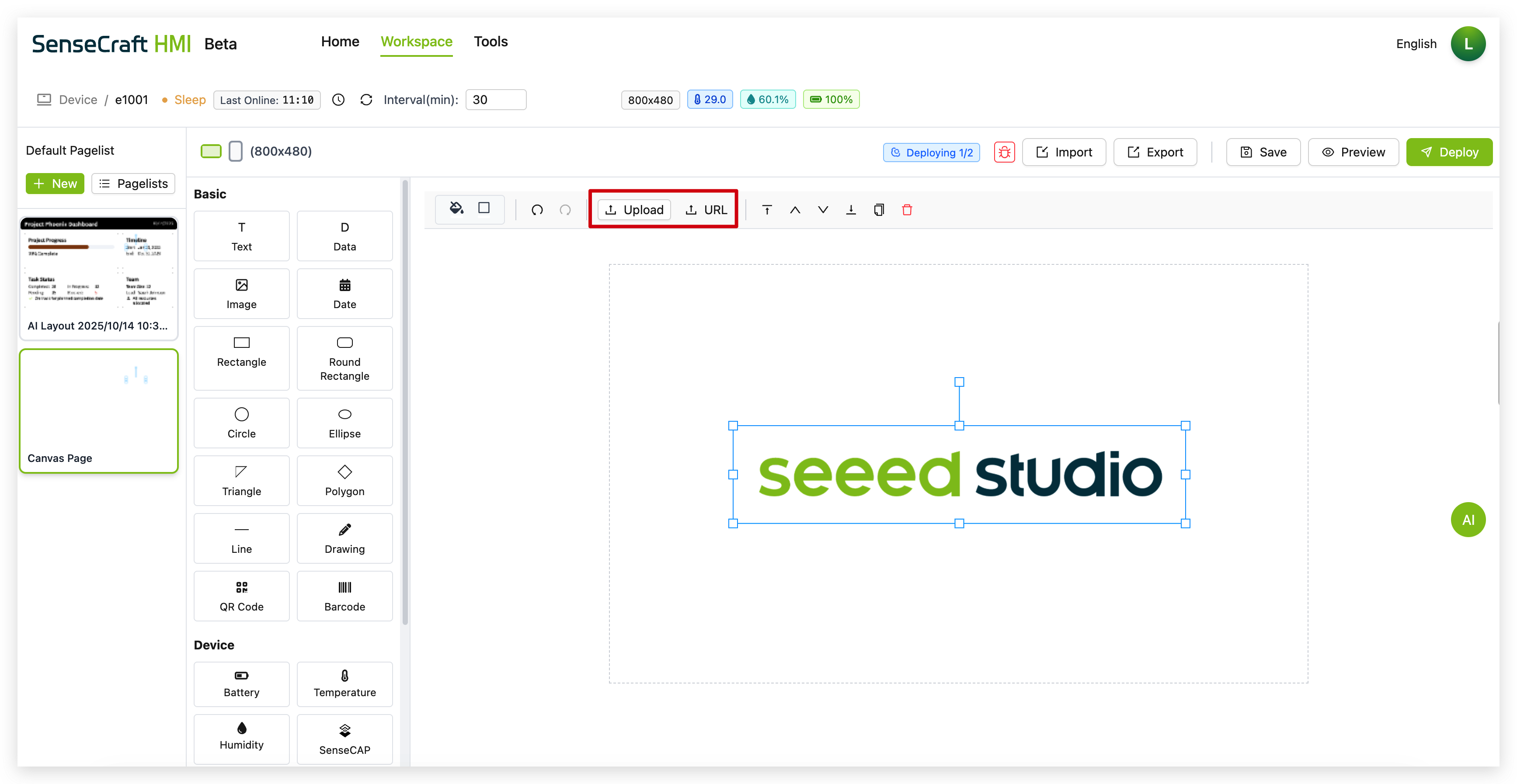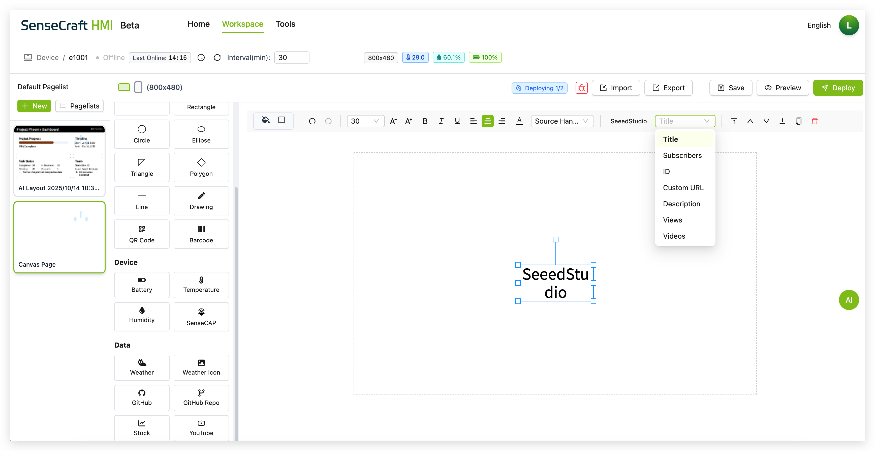 Section titled “Deploying to Your Device”Once you’ve created your canvas design, you’ll want to deploy it to your Seeed device: