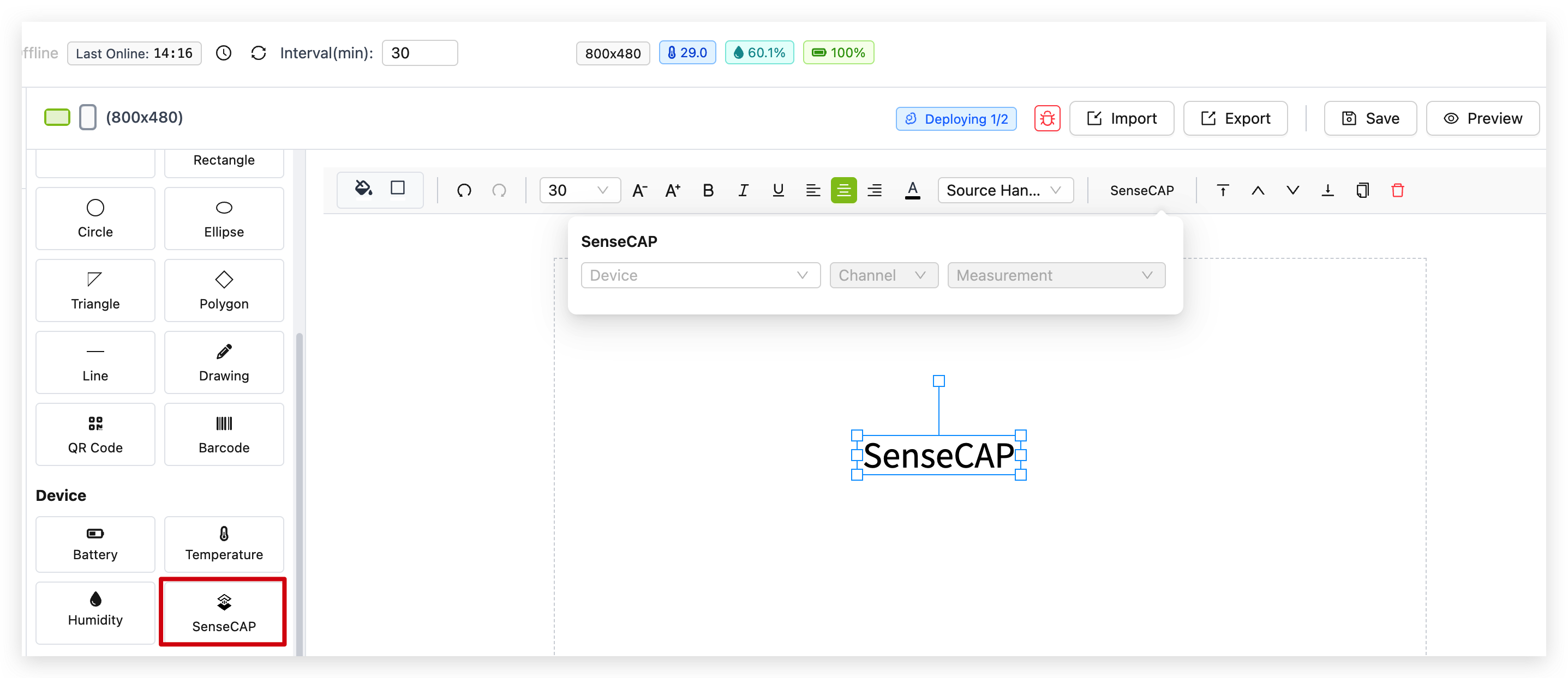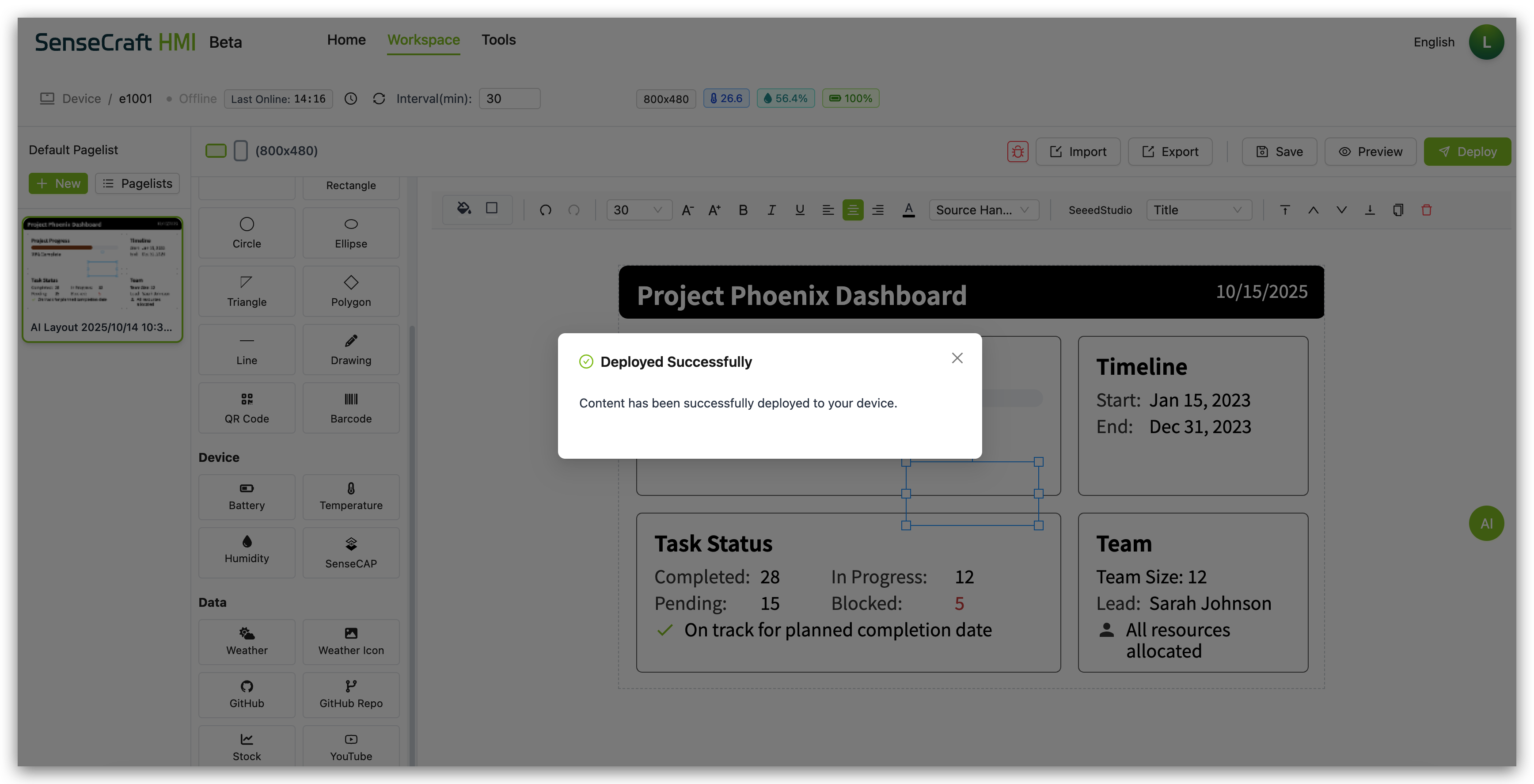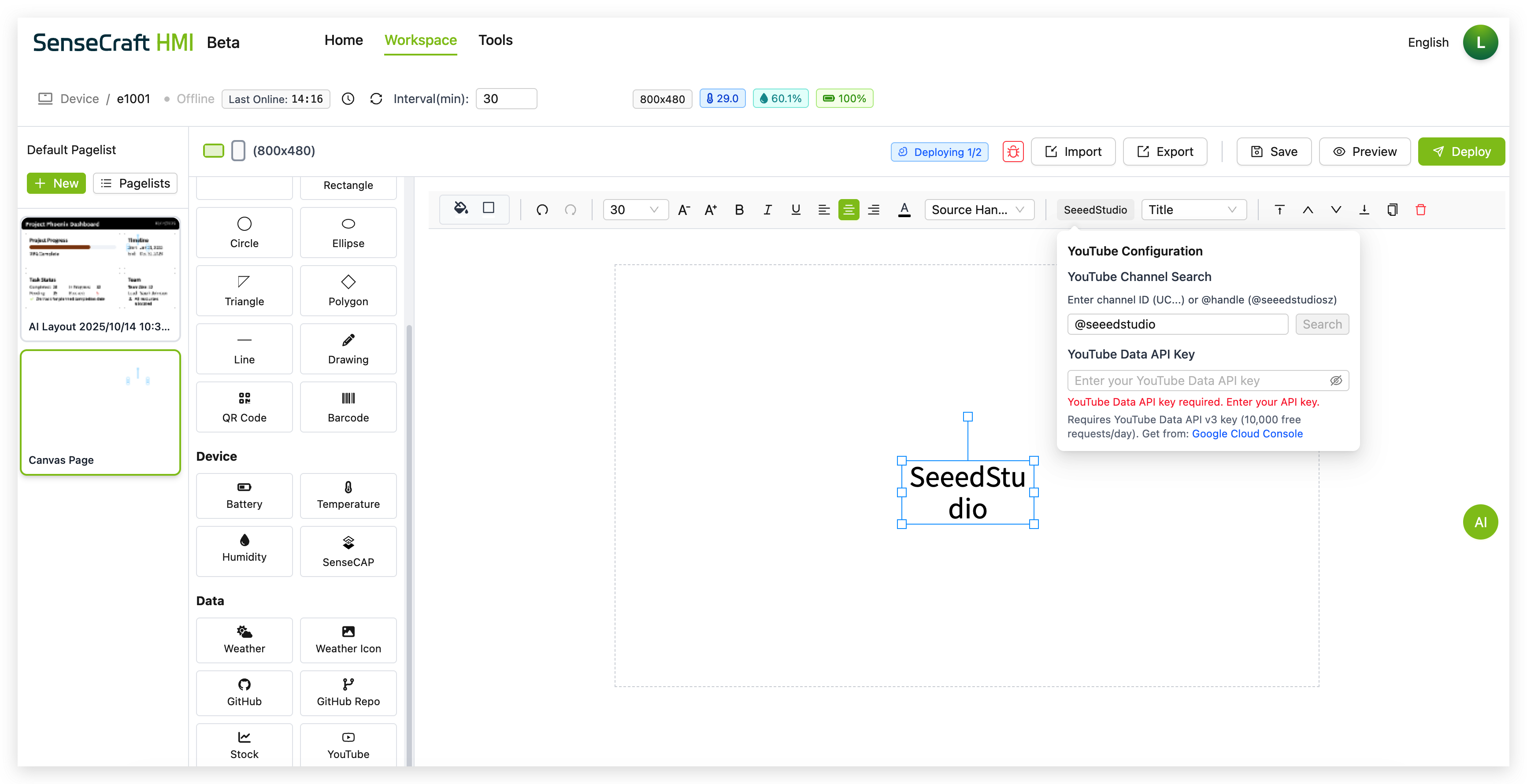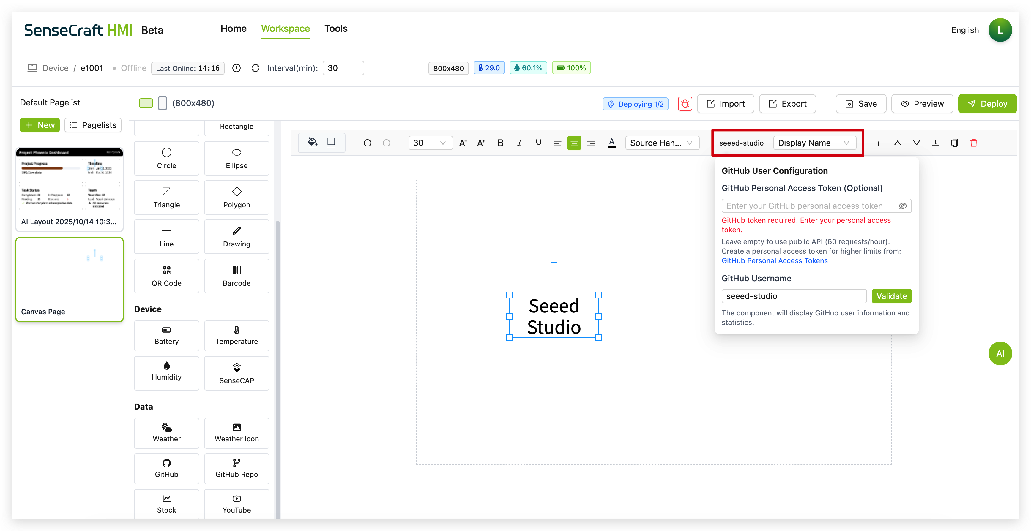 Section titled “Deploying to Your Device”Once you’ve created your canvas design, you’ll want to deploy it to your Seeed device:
