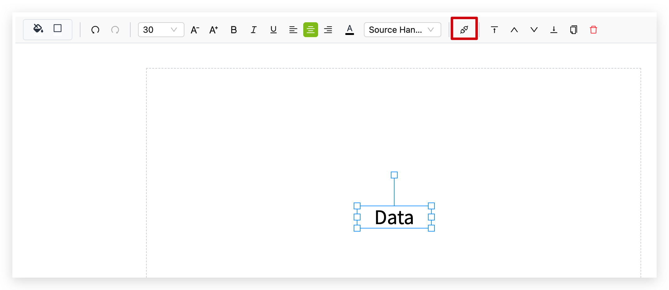 Step 3. With the component selected, click the Data Settings icon (it looks like a chain link) in the toolbar to open the configuration panel.